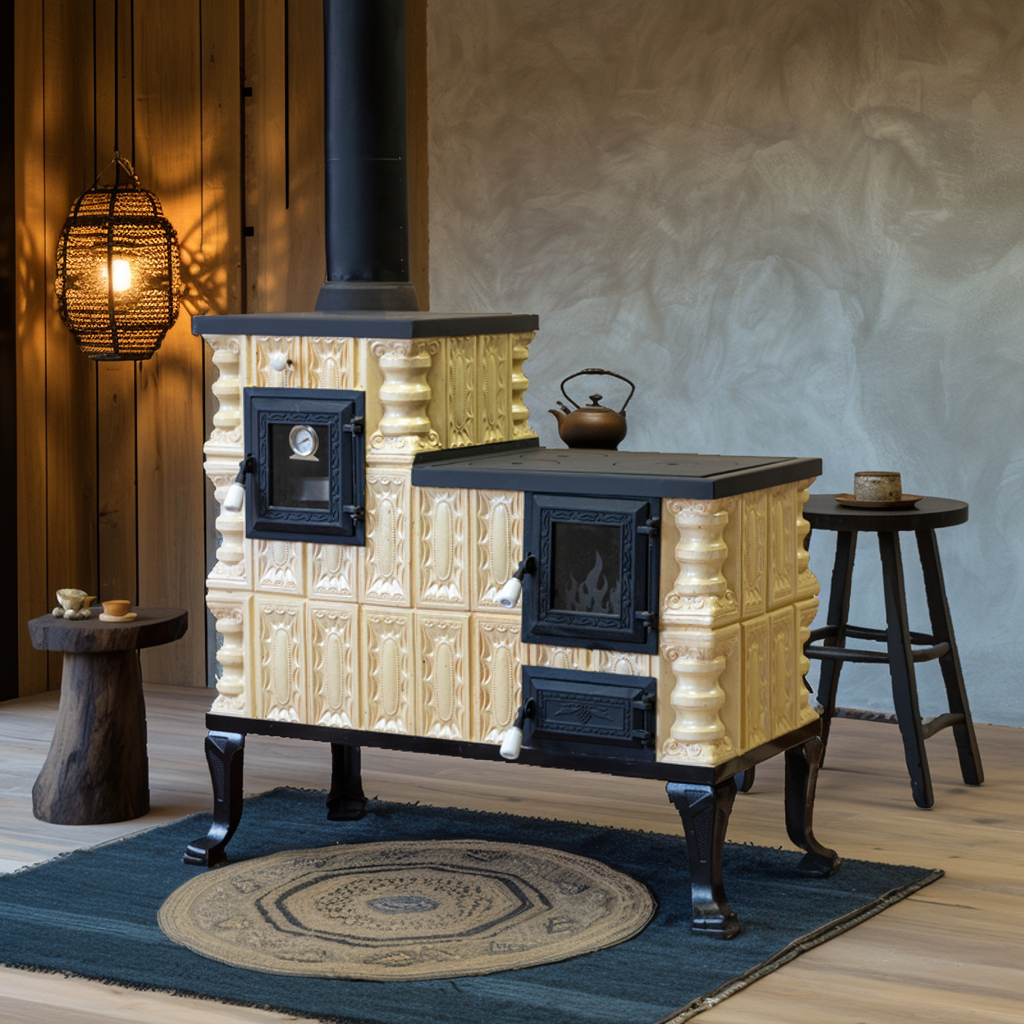 Piec kaflowy jest zbudowany z cegieł szamotowych i zaprawy szamotowej. Po wygaszeniu ognia UTRZYMUJE CIEPŁO JESZCZE PRZEZ DŁUGI CZAS. Modele o mocy 10 kW pozostają ciepłe 5–7 godzin po wygaszeniu ognia (przez całą noc).